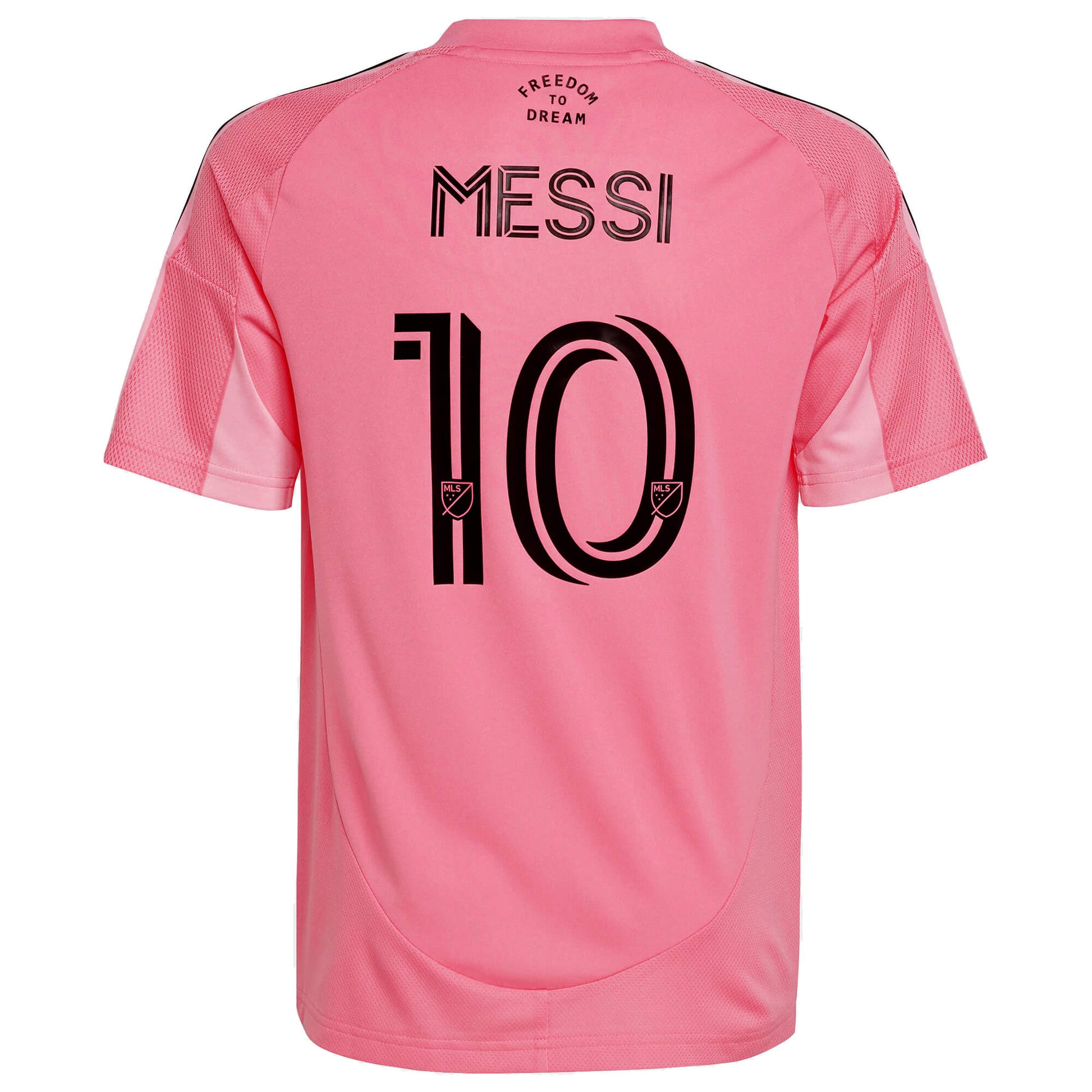 The adidas Kids Inter Miami 2025/26 Home Jersey with Messi #10 printing is a must-have for young fans. Featuring bold pink stripes, the black crown logo, and the iconic Messi name and number, this jersey embodies the club’s "Freedom to Dream" spirit. AEROREADY technology keeps kids cool and comfortable—perfect for cheering on Leo Messi or playing their own game.