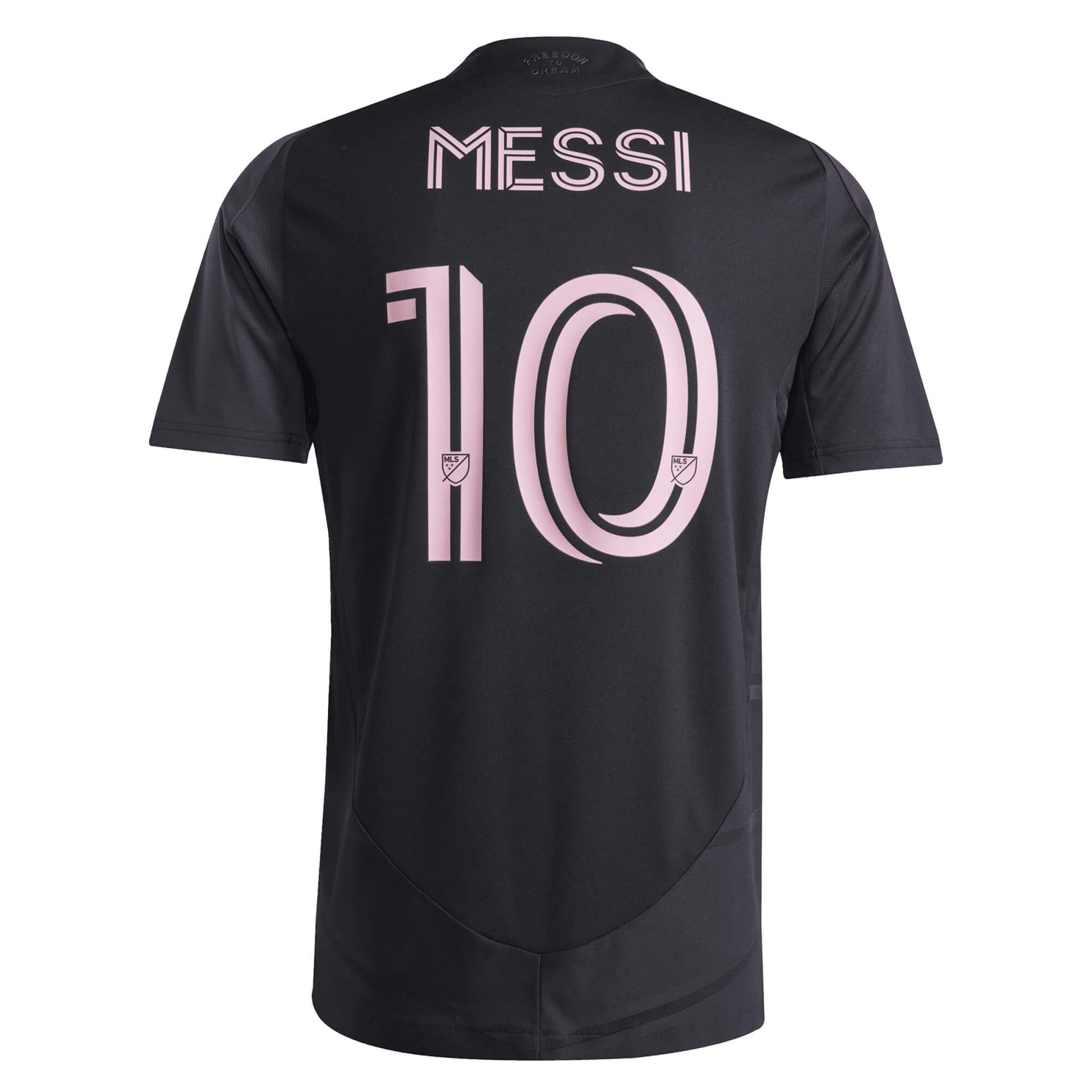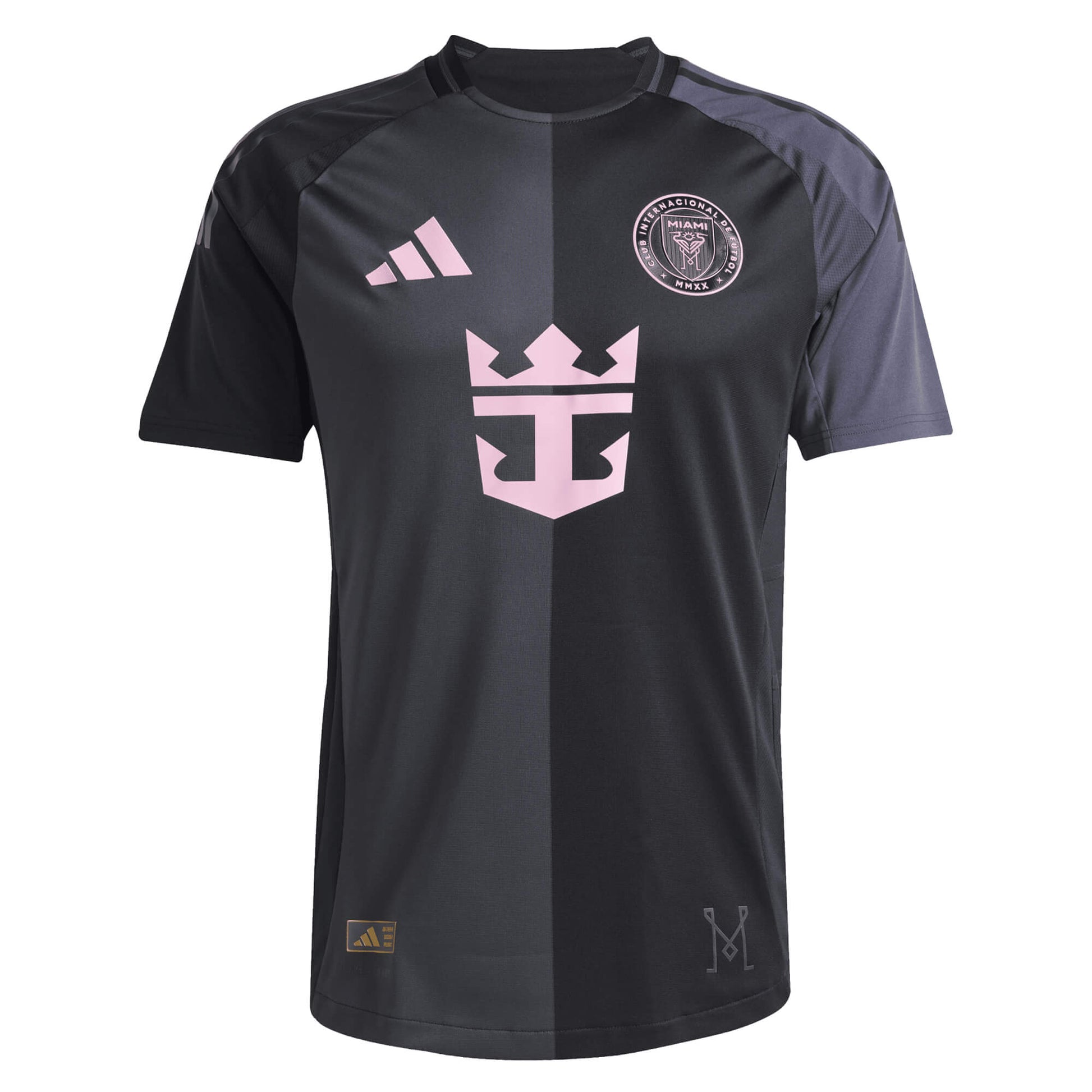 The adidas Men’s Inter Miami 2025/26 Authentic Away Jersey with Messi #10 printing showcases a bold, sleek design that reflects the club’s ambition and Miami’s vibrant energy. The black and charcoal half-and-half design is elevated with pink details, paying tribute to the team's signature colors while representing the city's nighttime skyline.