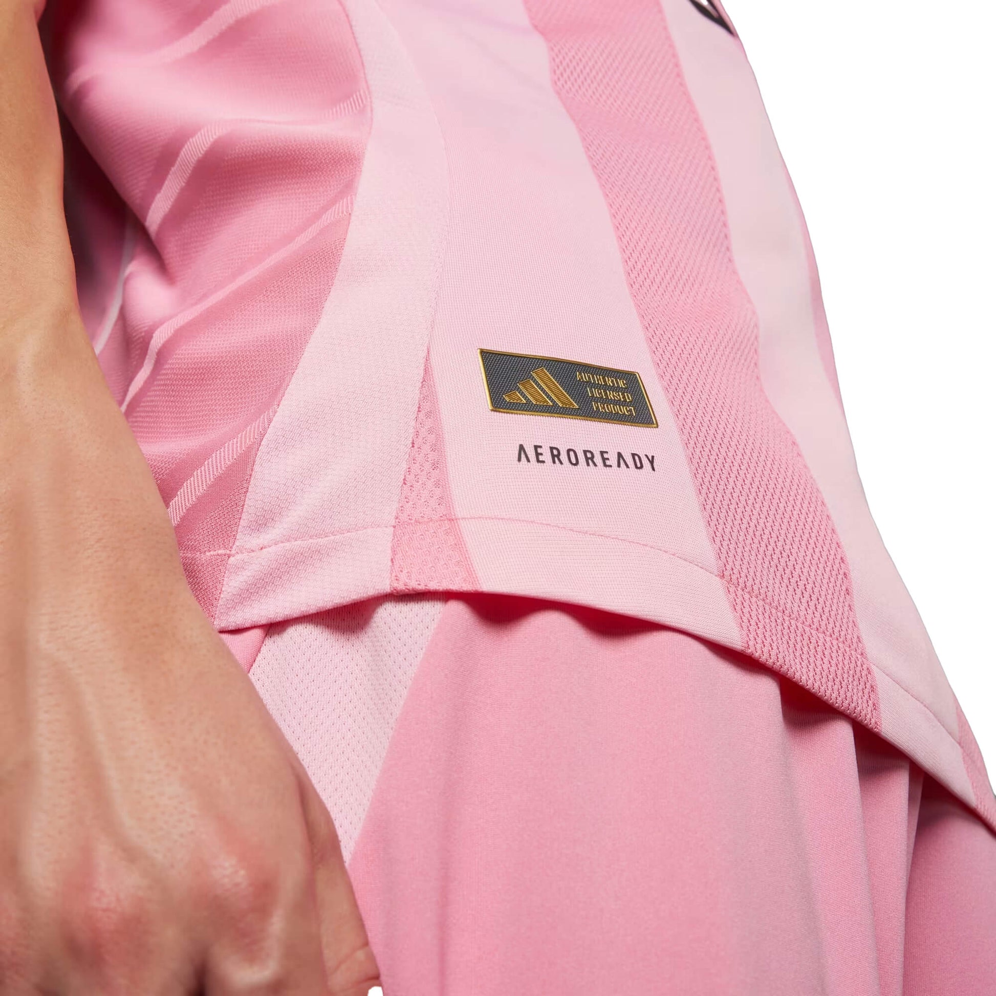 Proud. Passionate. Pink. The adidas Men's Inter Miami 2025/26 Authentic Home Jersey with Messi #10 Printing debuts a fresh shade for the new season while staying true to the club’s signature colors. Designed for a sleek, modern look, the team badge and 3 Bar Logo are centered, while Messi’s name and number add superstar flair on the back. Engineered for performance, AEROREADY technology wicks moisture to keep you cool and comfortable on the field or in the stands.