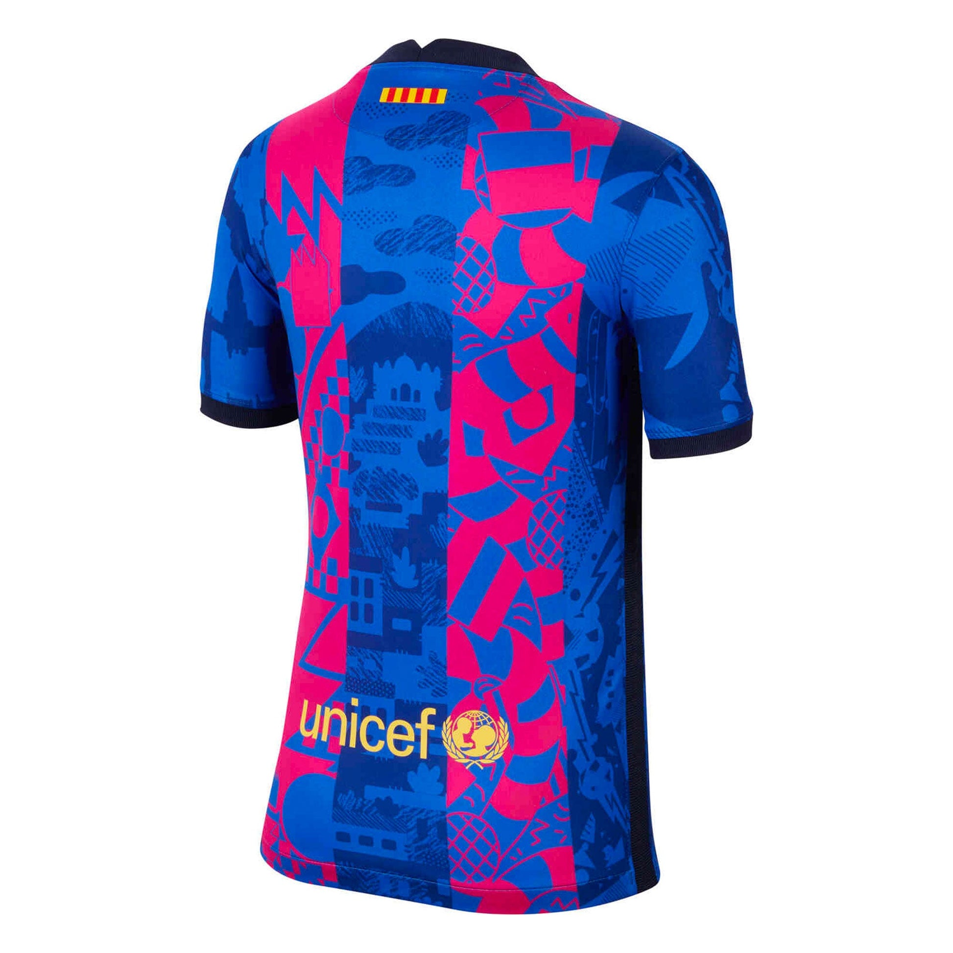 The Nike Kids FC Barcelona 2021/22 Third Jersey pairs replica design details with sweat-wicking fabric to give you a game-ready look inspired by your favorite team. This product is made from 100% recycled polyester fibers.
