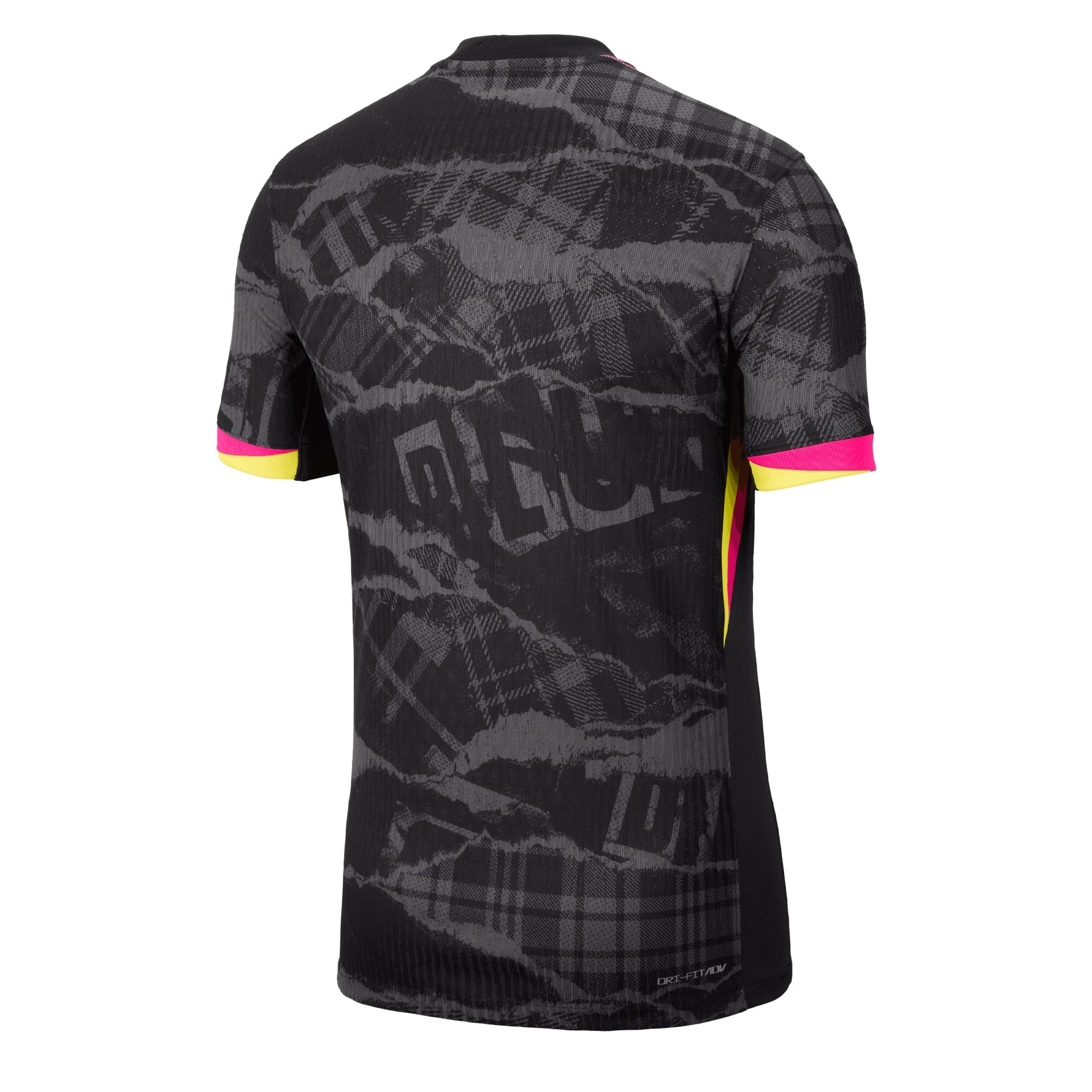 The Nike Men's Chelsea 2024/25 Dri-FIT ADV Third Jersey in Black/Pink represents unity between Chelsea FC's men's and women's teams, featuring a double Swoosh design that symbolizes their shared goal of advancing the sport. This jersey celebrates the rise of women's soccer and aims to inspire the next generation of athletes.