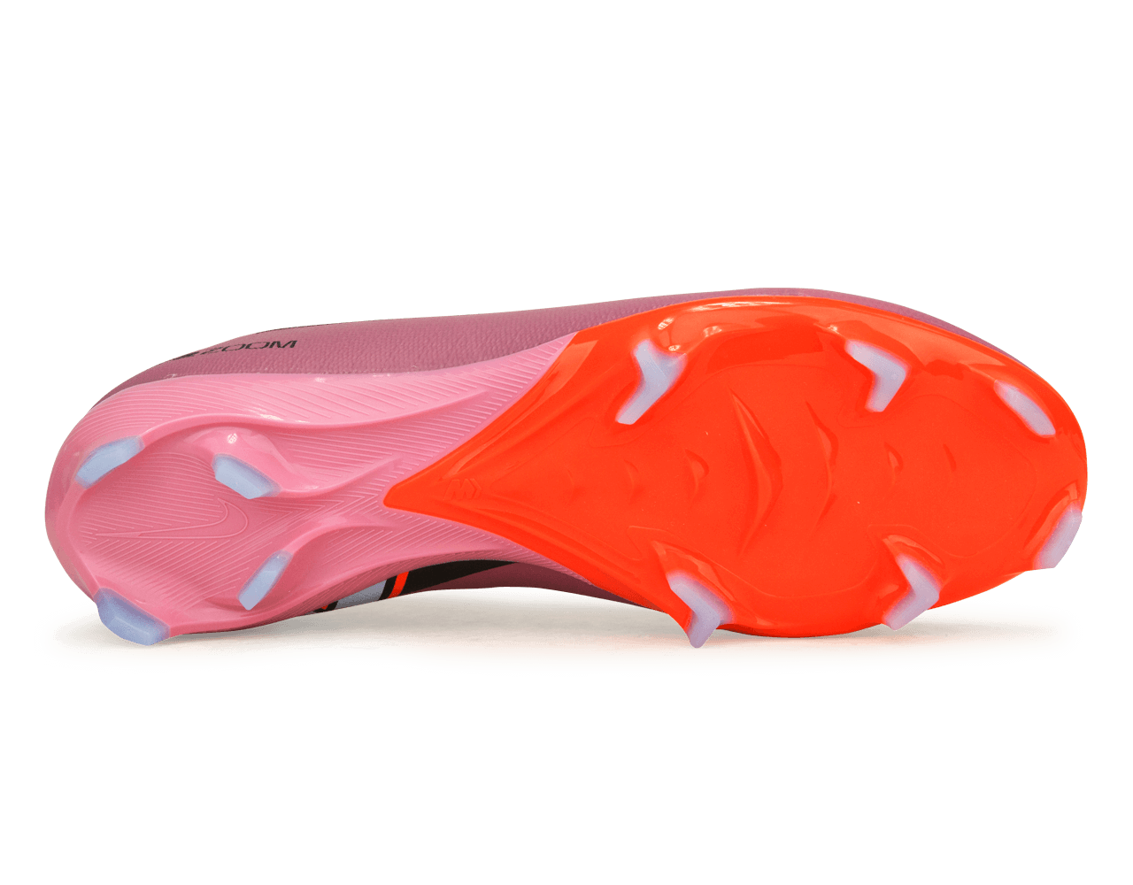 The Nike Men's Zoom Mercurial Vapor 16 Pro FG in Magic Flamingo/Total Crimson/Black is built for speed and precision. Featuring a responsive Air Zoom unit for explosive takeoffs and a lightweight Flyknit upper for quick cuts, it delivers enhanced control with a textured finish designed for sharp touch on the ball.