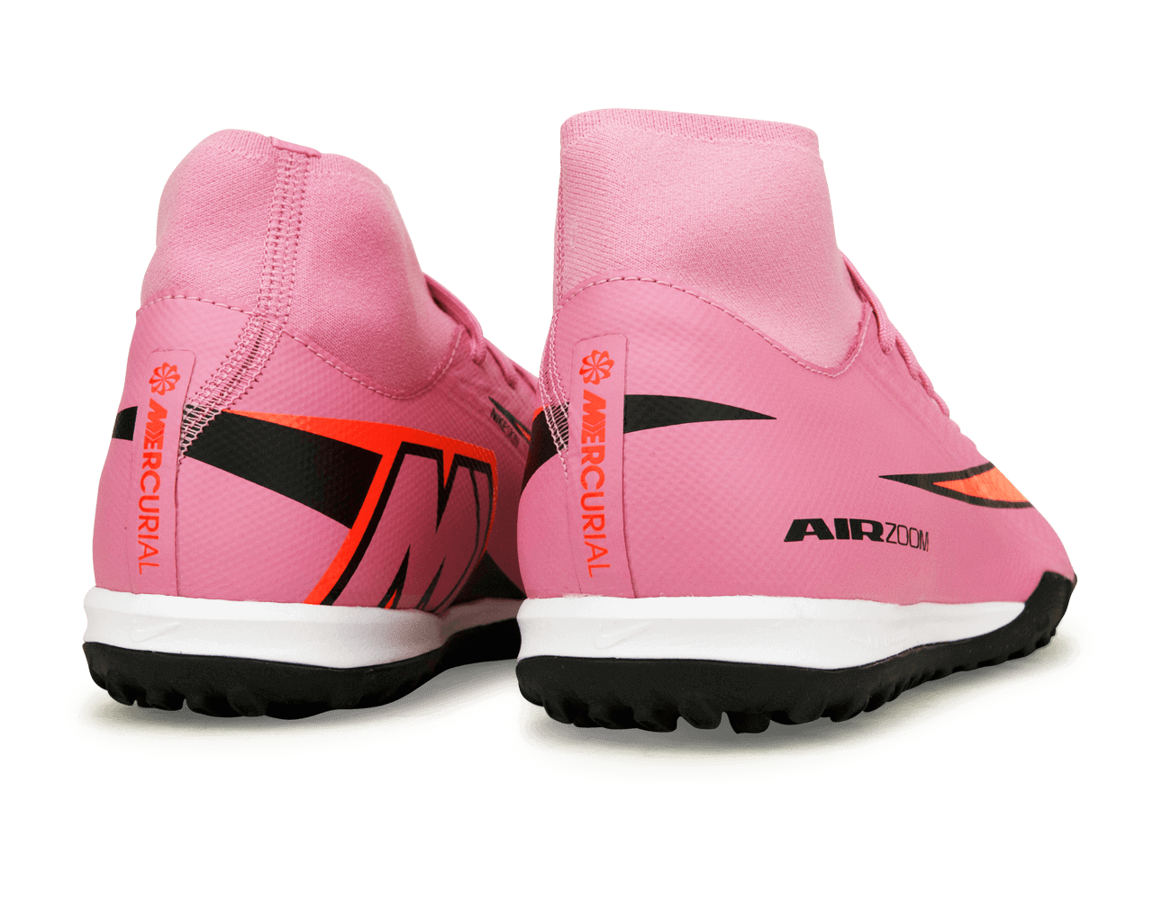 Push your pace to the next level with the Nike Men's Zoom Mercurial Superfly 10 Academy TF in Magic Flamingo/Total Crimson/Black. Featuring a redesigned heel Air Zoom unit, this turf shoe delivers responsive energy return for quick bursts and agile movement. Engineered for precision and speed, it offers the control you need to stay sharp and explosive all game long.