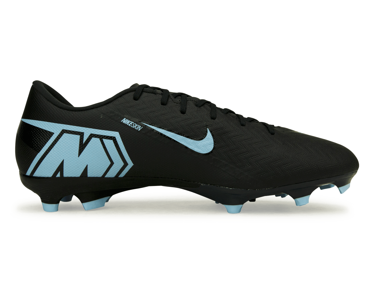 Step up your game with the Nike Men's Zoom Mercurial Vapor 16 Academy FG/MG in Black/Ice Blue. Engineered for top-tier performance, this cleat delivers explosive speed with forefoot traction designed to engage more of the Zoom Air unit on impact, enhancing energy return exactly when you need it. Its streamlined design also expands surface contact for superior responsiveness, keeping you fast and agile from start to finish.