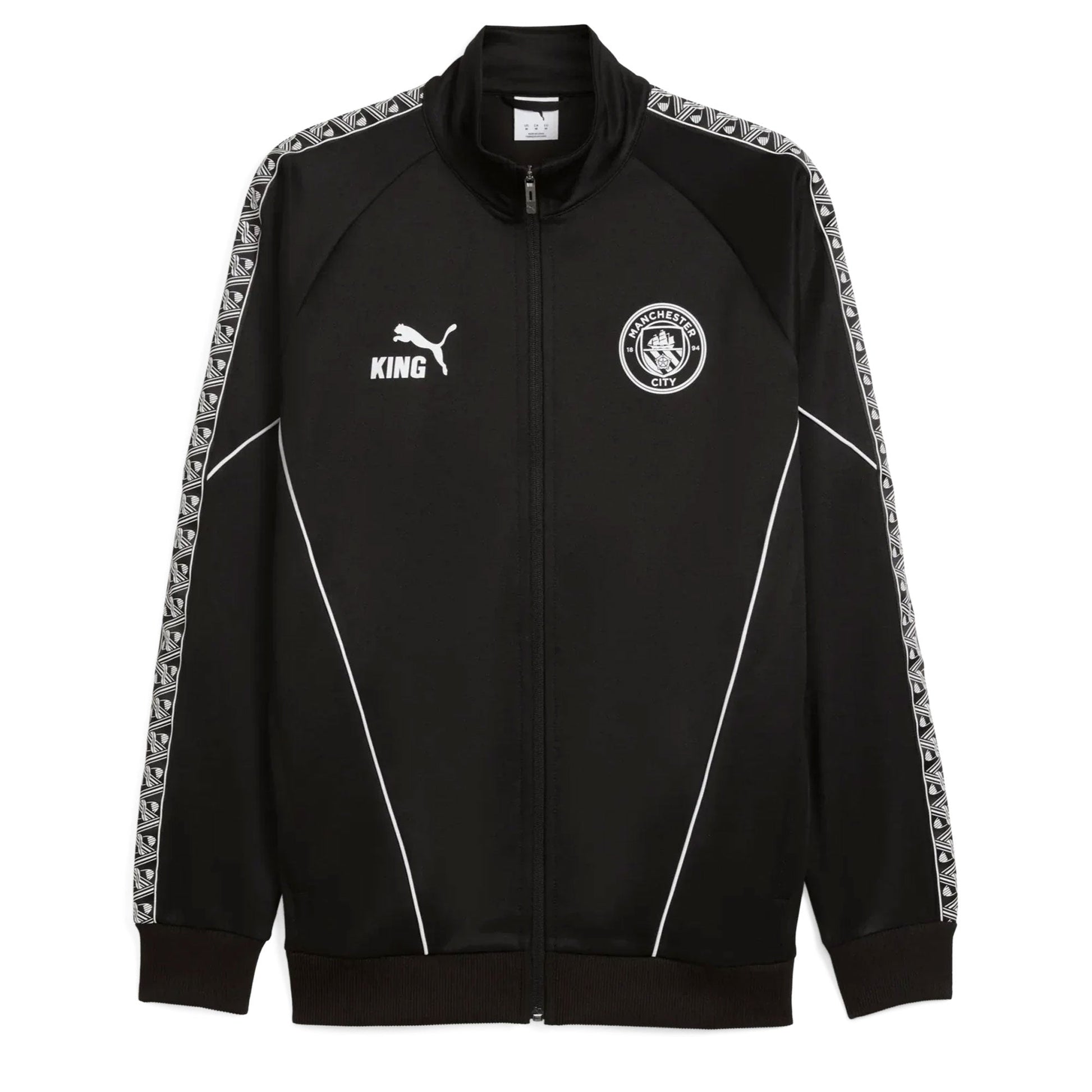 The PUMA Men's Manchester City King Anthem Jacket in Black, blends vintage style with a modern edge, as seen on players during pre-match walkouts. Featuring bold, retro-inspired details, it celebrates the club's rich heritage while letting you show your pride in comfort and style—on matchday or beyond.